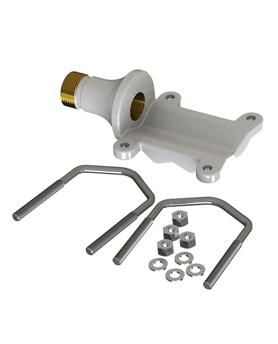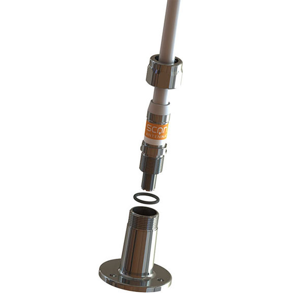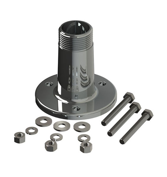 Description: Heavy-duty bright chromed solid brass mounting bracket for installation of antennas on deck etc. The bracket is especially made for antennas accepting the 1″ Revolving Nut mounting system
