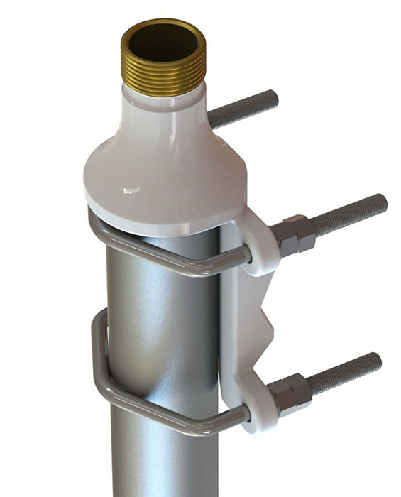 Description: Very strong heavy duty bracket for installation of antennas on pole with diameters from 38 mm to 75 mm (G2 1/2 water pipe) as well as horizontally on side beams with diameters from 30 mm to 75 mm. Optionally it can be placed on wall.